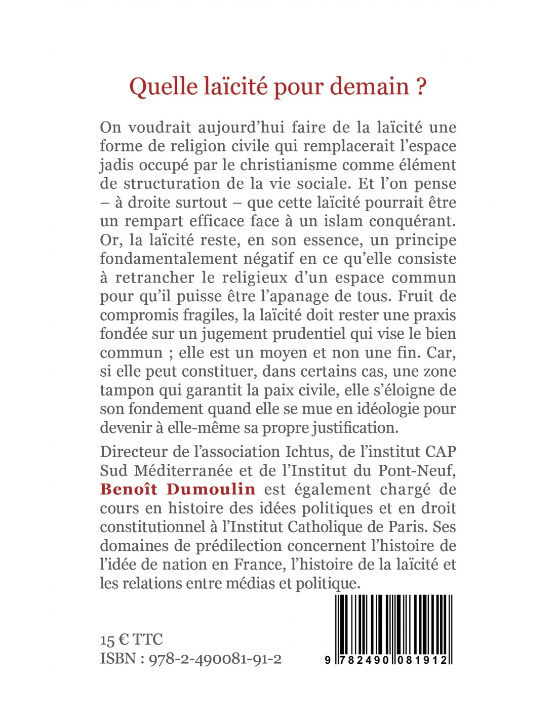 Directeur de l’association Ichtus, de l’institut CAP Sud Méditerranée et de l’Institut du Pont-Neuf, Benoît Dumoulin est également chargé de cours en histoire des idées politiques et en droit constitutionnel à l’Institut Catholique de Paris. Ses domaines de prédilection concernent l’histoire de l’idée de nation en France, l’histoire de la laïcité et les relations entre médias et politique.