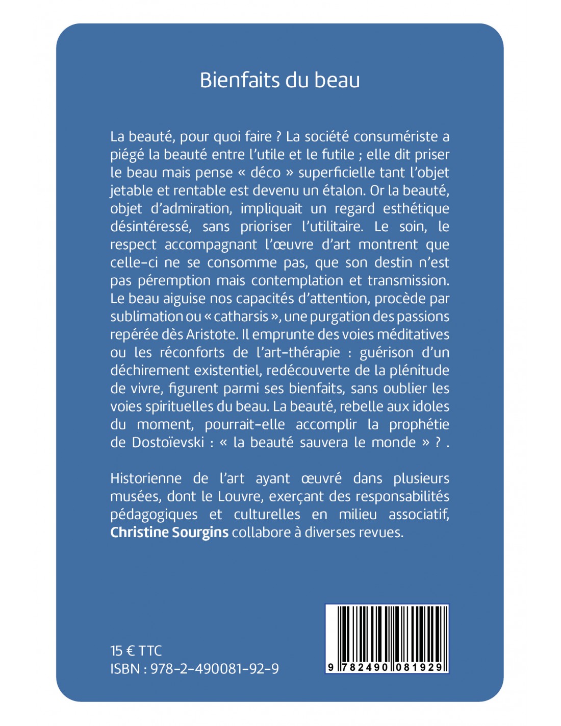 La beauté, pour quoi faire ? La société consumériste a piégé la beauté entre l’utile et le futile ; elle dit priser le beau mais pense « déco » superficielle tant l’objet jetable et rentable est devenu un étalon. Or la beauté, objet d’admiration, impliquait un regard esthétique désintéressé, sans prioriser l’utilitaire. Le soin, le respect accompagnant l’œuvre d’art montrent que celle-ci ne se consomme pas, que son destin n’est pas péremption mais contemplation et transmission. Le beau aiguise nos capacités d’attention, procède par sublimation ou « catharsis », une purgation des passions repérée dès Aristote. Il emprunte des voies méditatives ou les réconforts de l’art-thérapie : guérison d’un déchirement existentiel, redécouverte de la plénitude de vivre, figurent parmi ses bienfaits, sans oublier les voies spirituelles du beau. La beauté, rebelle aux idoles du moment, pourrait-elle accomplir la prophétie de Dostoïevski : « la beauté sauvera le monde » ? .