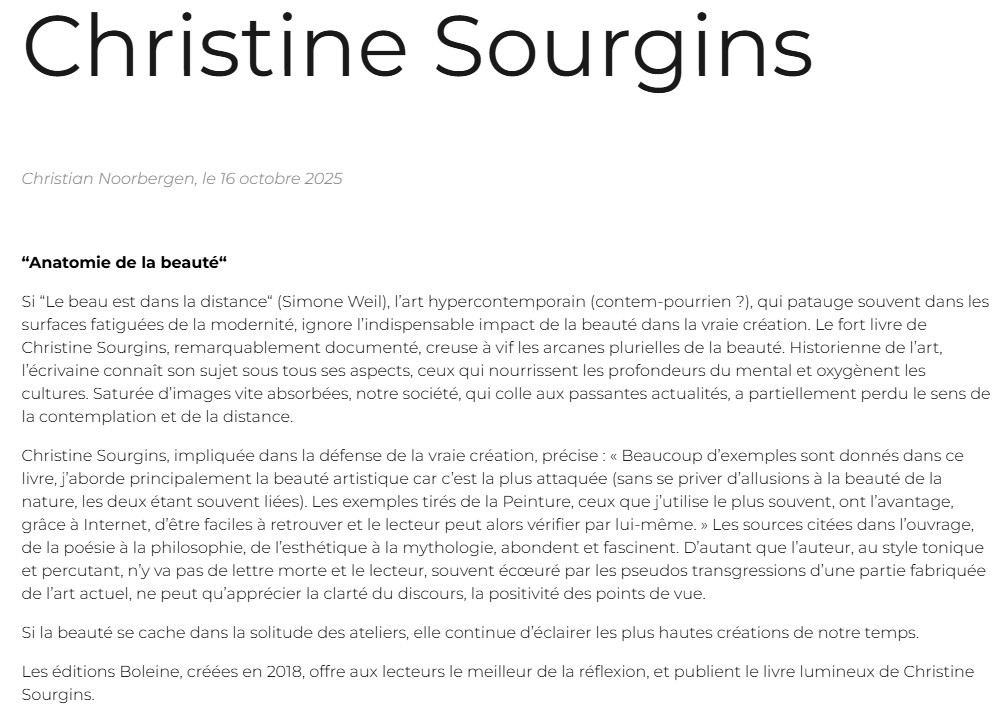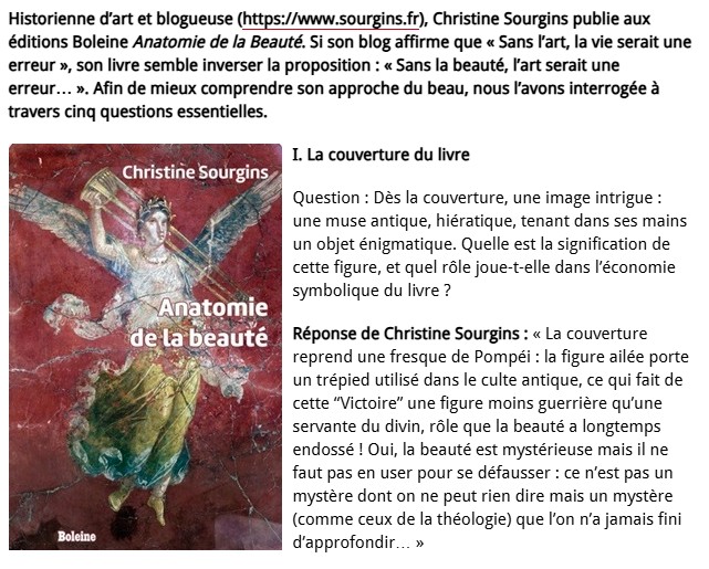 Christine Sourgins a répondu aux questions d'Agoravox au sujet de son livre et de la beauté qu'il explore. Retrouvez l'interview complète en cliquant ici.