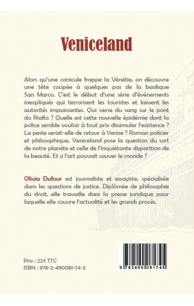 Alors qu'une canicule frappe la Vénétie, on découvre une tête coupée à quelques pas de la basilique San Marco. C'est le début d'une série d'événements inexpliqués qui terrorisent les touristes et laissent les autorités impuissantes. Qui verse du sang sur le pont du Rialto ? Quelle est cette nouvelle épidémie dont la police semble vouloir à tout prix dissimuler l'existence ? La peste serait-elle de retour à Venise ? Roman policier et philosophique, Veniceland pose la question du sort de notre planète et celle de l'inquiétante disparition de la beauté. Et si l'art pouvait sauver le monde ?